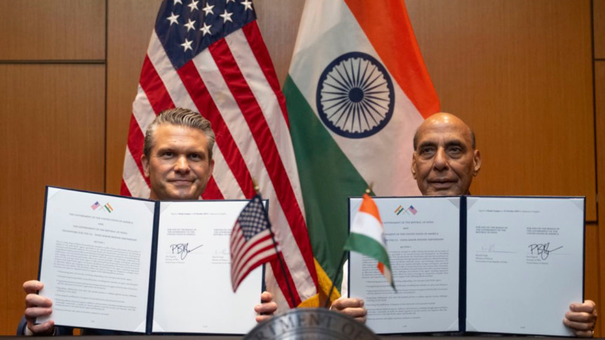 প্রতিরক্ষা খাতে নিজেদের মধ্যে সহযোগিতা আরও এগিয়ে নিতে ১০ বছর মেয়াদী কাঠামো চুক্তিতে সই করেছে ভারত ও যুক্তরাষ্ট্র। শুক্রবার (৩১ অক্টোবর) মালয়েশিয়ার কুয়ালালামপুরে ভারতের প্রতিরক্ষামন্ত্রী রাজনাথ সিং ও মার্কিন প্রতিরক্ষামন্ত্রী পিট হেগসেথের বৈঠকের পর এই চুক্তি স্বাক্ষরের ঘোষণা দেওয়া হয়।  রয়টার্স এক প্রতিবেদনে এমনটি জানিয়েছে।  আসিয়ান প্রতিরক্ষা মন্ত্রীদের বৈঠকের ফাঁকে দুই নেতা এই বৈঠকে মিলিত হন।