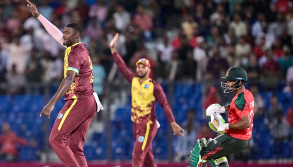 বাংলাদেশ :২০ ওভারে (ইমন ৯, লিটন ৬, সাইফ ২৩, রিশাদ ৩, নুরুল ১, নাসুম ১, জাকের ৫, তামিম ৮৯, ; হোল্ডার ৪-০-৩২-২, আকিল ৪-০-২৬-১, শেফার্ড ৪-০-৩৬-৩, চেজ ৪-০-২৩-১, পিয়েরে ৩-০-২৩-২, মোতি ১-০-১১-০)