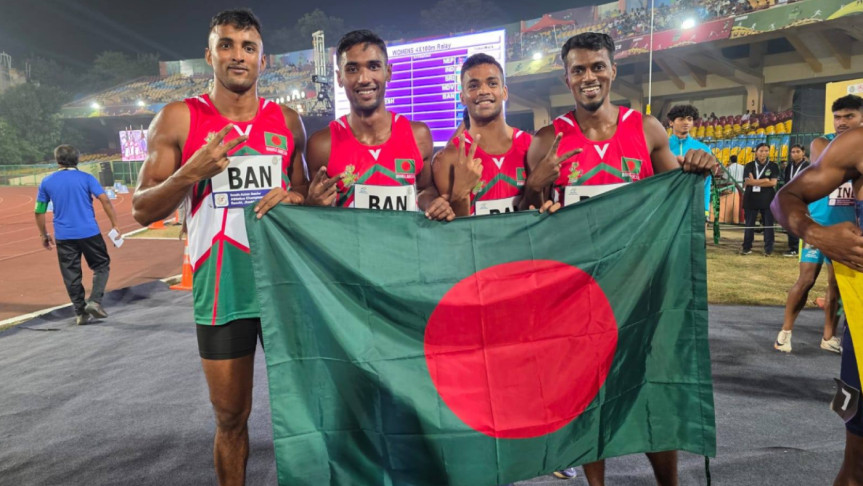 ৪/১০০ মিটারের রিলে শেষ করতে বাংলাদেশের দৌড়বিদদের সময় লেগেছে ৪০.৮৪ সেকেন্ড। এই ইভেন্টে প্রথম হওয়া শ্রীলঙ্কার দৌড়বিদদের সময় ছিল ৩৯.৯৯। রৌপ্য পাওয়া ভারতের লেগেছে ৪০.৬৫ সেকেন্ড।