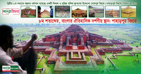 বাংলাদেশে বৌদ্ধ পাল রাজবংশের প্রতিষ্ঠা লাভের সঙ্গে সঙ্গে তাঁদের পৃষ্ঠপোষকতায় বাংলা ও বিহারে বৌদ্ধধর্ম অত্যন্ত প্রাবল্য লাভ করে। পাল রাজত্বে নির্মিত নালন্দার বিখ্যাত মহাবিহার ও পাহাড়পুরের (সোমপুর বিহার) বিশাল মন্দির ও বিহারই এর উজ্জ্বল সাক্ষ্য বহন করেছে। পাল রাজত্বের প্রথম ভাগে খ্রিষ্টীয় ৮ম শতাব্দে সম্ভবত ধর্মপাল নিজেদের পিতৃভূমি বরেন্দ্রে একটি বিশাল ও সুউচ্চ মন্দির স্থাপনের উদ্দেশ্যে সোমপুর বিহার (বর্তমান পাহাড়পুর) নির্মাণ করেন। খ্রিষ্টীয় ৭ম শতাব্দের মাঝামাঝি সময়ে বিখ্যাত চৈনিক পরিব্রাজক উয়ান-চোয়ঙ পূণ্ডবর্ধনে আসেন এবং তৎকালীন প্রসিদ্ধ বৌদ্ধ, জৈন ও ব্রাহ্মণ্য ধর্মীয় প্রতিষ্ঠানগুলো সম্পর্কে এক বিস্তৃত বিবরণ প্রদান করেন। কিন্তু অত্যন্ত আশ্চর্যের বিষয় তার বিবরণীর কোথাও পাহাড়পুরের বিহার বা মন্দিরের কোনও উল্লেখ নেই। তাঁর ভ্রমণকালে এই মন্দির ও বিহারের কোনো অস্তিত্ব থাকলে তিনি অবশ্যই তার উল্লেখ করতেন। কাজেই মনে হয় উয়ান্-চোয়াঙের ভ্রমণকালে পাহাড়পুরে উল্লেখযোগ্য তেময় কোন বৌদ্ধ মন্দির বা বিহার ছিল না। এছাড়া বৌদ্ধ মহাযান মতবাদ খ্রিষ্টীয় ১৭শ শতাব্দ পর্যন্ত দেশে প্রচলিত ছিল এবং বিখ্যাত তিব্বতীয় ইতিহাস গ্রন্থ “পাগ্-সাম্-জোন্-ঋাং” এর লেখক অত্যন্ত সুস্পষ্টভাবে দেবপাল প্রকৃতপক্ষে তার পিতা ধর্মপাল কর্তৃক সোমপুরে বর্তমান পাহাড়পুর নির্মিত বিশাল বিহার ও সুউচ্চ মন্দিরের উল্লেখ করেছেন। সোমপুর বিহারের ভিক্ষুরা নালন্দা, বুদ্ধগয়া প্রভৃতি ভারতের বিভিন্ন প্রসিদ্ধ বৌদ্ধ তীর্থ স্থানে অর্থ ও ধন-রত্নাদি দান করতেন বলে বিভিন্ন লিপিতে যে উল্লেখ আছে তাতেও খ্রিষ্টীয় ১০স-১১শ শতাব্দে এই বিহারের সমৃদ্ধিশীল অবস্থার ইঙ্গিত পাওয়া যায়। কাজেই পালযুগের আগের ভাস্কর্য ও নানাপ্রকার লিপি ইত্যাদি এখানে আবিষ্কৃত হলেও একথা নিঃসন্দেহে বলা যেতে পারে যে, পাহাড়পুরের মন্দির ও বিহার পাল রাজত্বের প্রথম যুগে খ্রিষ্টীয় ৮ম শতাব্দের শেষভাদে নির্মিত হয়েছিল।
