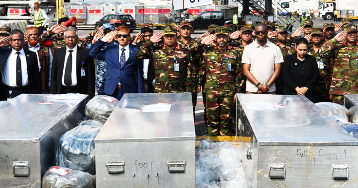 ঢাকা, ২০ ডিসেম্বর ২০২৫ (শনিবার): গত ১৩ ডিসেম্বর ২০২৫ তারিখে সুদানের আবেই এলাকায় জাতিসংঘ শান্তিরক্ষা মিশনের একটি ঘাঁটিতে সংঘটিত বর্বরোচিত সন্ত্রাসী ড্রোন হামলার ঘটনায় শাহাদাত বরণকারী ৬ জন শান্তিরক্ষীর মৃতদেহ আজ হযরত শাহজালাল আন্তর্জাতিক বিমানবন্দর ঢাকায় এমিরেটস এয়ারলাইন্সের একটি বিমানে দেশে প্রত্যাবর্তন করে।