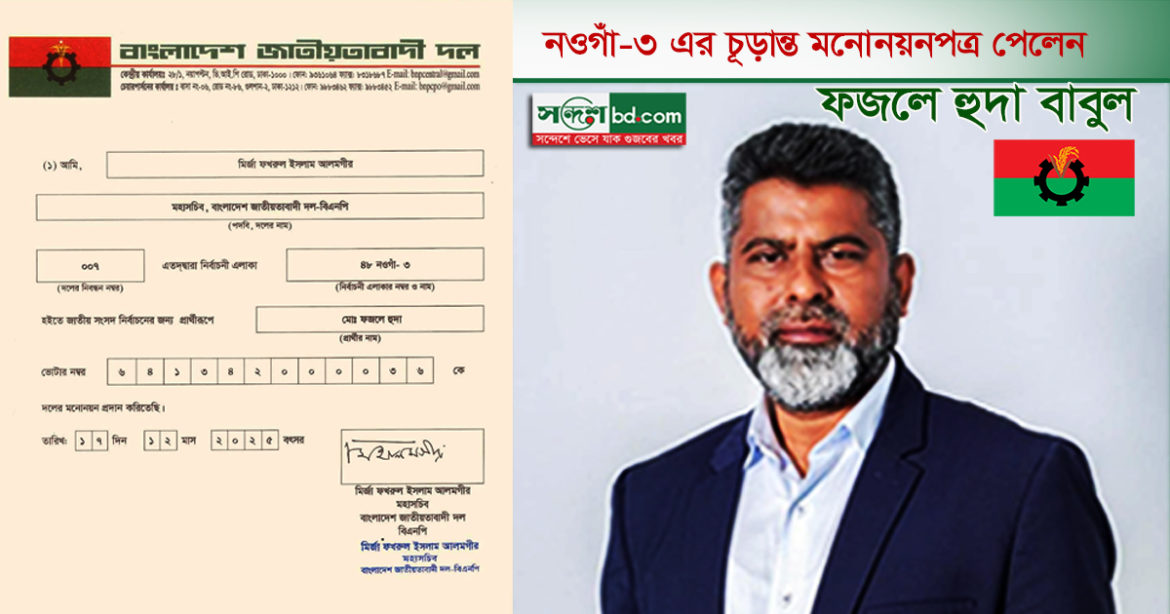 নওগাঁ-৩ এর চূড়ান্ত মনোনয়নপত্র পেলেন ফজলে হুদা বাবুল